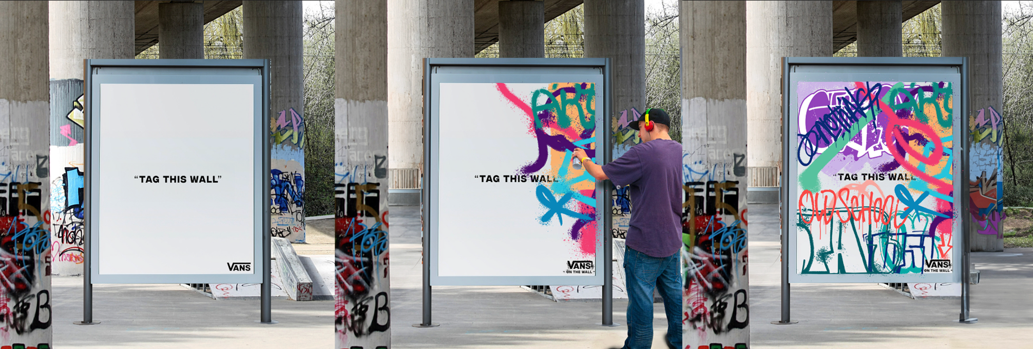 While graffiti can enhance cities, mindless tagging proves to be a nuisance to business owners. Tagging has tarnished graffiti’s reputation. Vans has always been known as an "OFF THE WALL" brand, but now we are turning that on its head by going 'ON THE WALL'. We created these walls to allow taggers a dedicated space to express themselves.